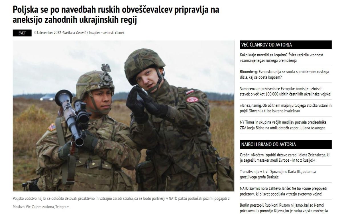 Nekdanji novinar Mladine in urednik zunanjepolitične redakcije na Dnevniku je na portalu insajder objavil članek svoje žene Svetlane Vasović, kjer ta navaja trditve ruskih obveščevalcev, da »se Poljska pripravlja na aneksijo zahodnih ukrajinskih regij«.