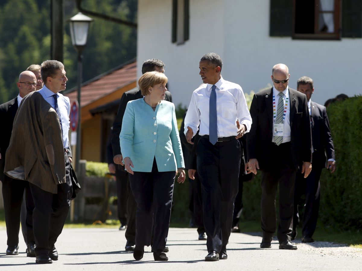 V dvostranskih pogovorih pred vrhom sta Obama in Merklova na bavarskem gradu Elmau med drugim govorila o odnosih z Rusijo, zvezi Nato ter prostotrgovinskem in investicijskem sporazumu TTIP, o katerem se pogajajo EU in ZDA, so sporočili iz urada nemške kanclerke. Podrobnosti niso navedli.