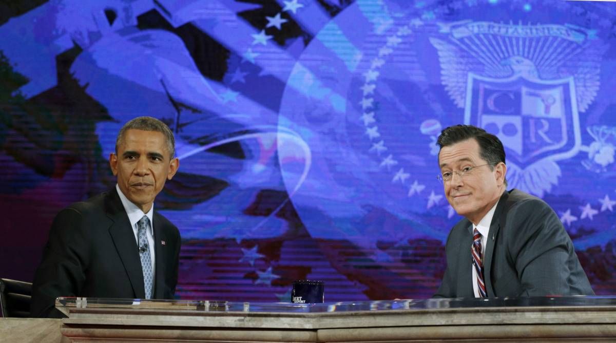 Obama tako očitno kljub slabim rezultatom v javnomnenjskih raziskavah in izgubljenih volitvah v kongres ni izgubil smisla za humor. V priljubljenem televizijskem šovu The Colbert Report je za krajši čas presedlal na stolček voditelja in ob tem povedal, da se ni še nikoli počutil tako mogočnega kot za to voditeljsko mizo.