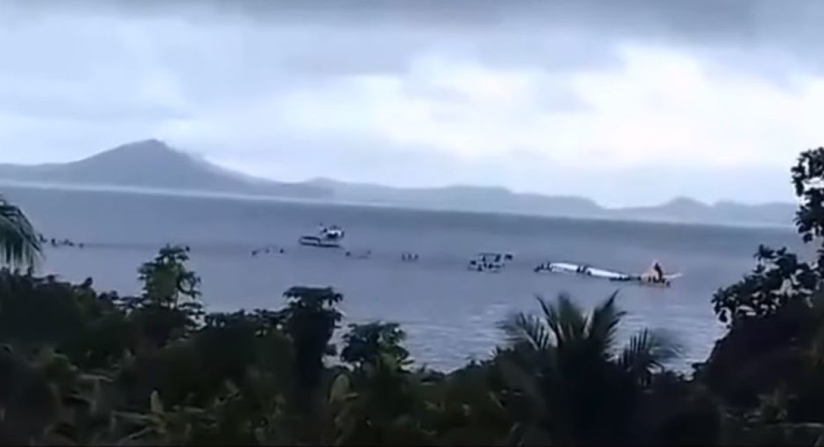Fotografije na družbenih omrežjih prikazujejo, kako nekaj čolnov, ki sodelujejo pri reševanju potnikov, obkroža deloma potopljeno letalo.