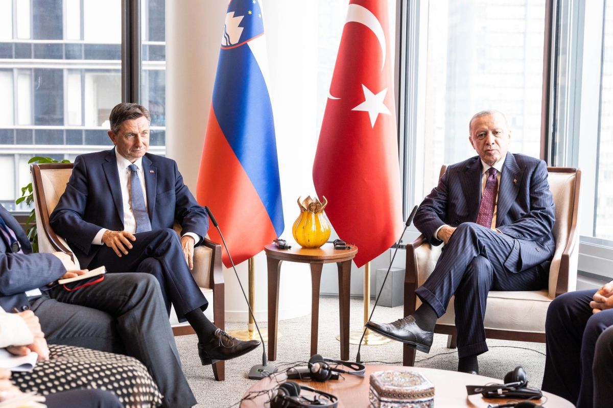 Predsednik Borut Pahor, ki vodi slovensko delegacijo na 76. zasedanju Generalne skupščine Združenih narodov, se je v torek srečal s predsednikom Turčije Recepom Tayyipom Erdoganom ter opravil še več dvostranskih srečanj. Zvečer se je skupaj z zunanjim ministrom Anžetom Logarjem udeležil tudi svečanega sprejema ob 30-letnici slovenske samostojnosti.