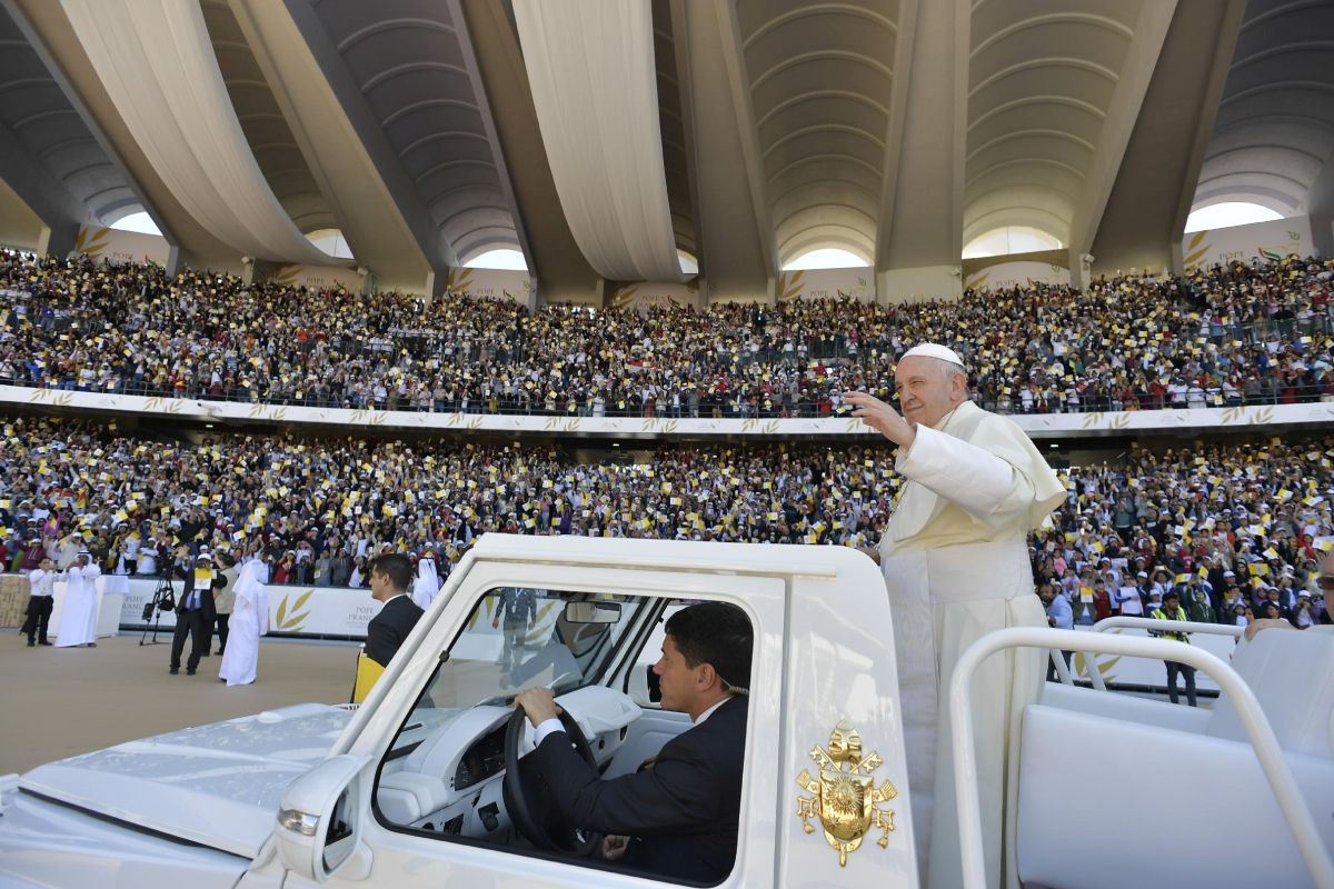 Frančiška, ki je prvi papež na obisku na Arabskem polotoku, je na poti na stadion, na katerega se je peljal v papamobilu, spremljala navdušena množica. V njej je bila tudi deklica, ki je stekla proti svetemu očetu in ko so jo hoteli varnostniki ustaviti, je Frančišek ustavil vozilo in se obrnil k otroku.