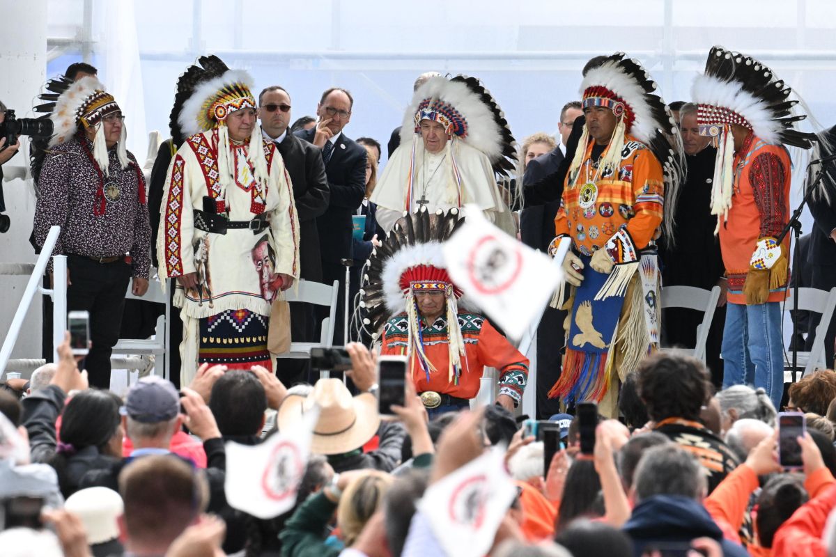 Papež je dan začel s srečanjem z domorodnimi plemeni in prvotnimi ljudstvi v kraju Maskwacis pri Edmontonu, kjer je nekoč stal eden od zloglasnih internatov za indijanske otroke, ki jim v Kanadi pravijo rezidentske šole, in se ob molitvi opravičil za zlorabe katoliške cerkve v preteklosti.