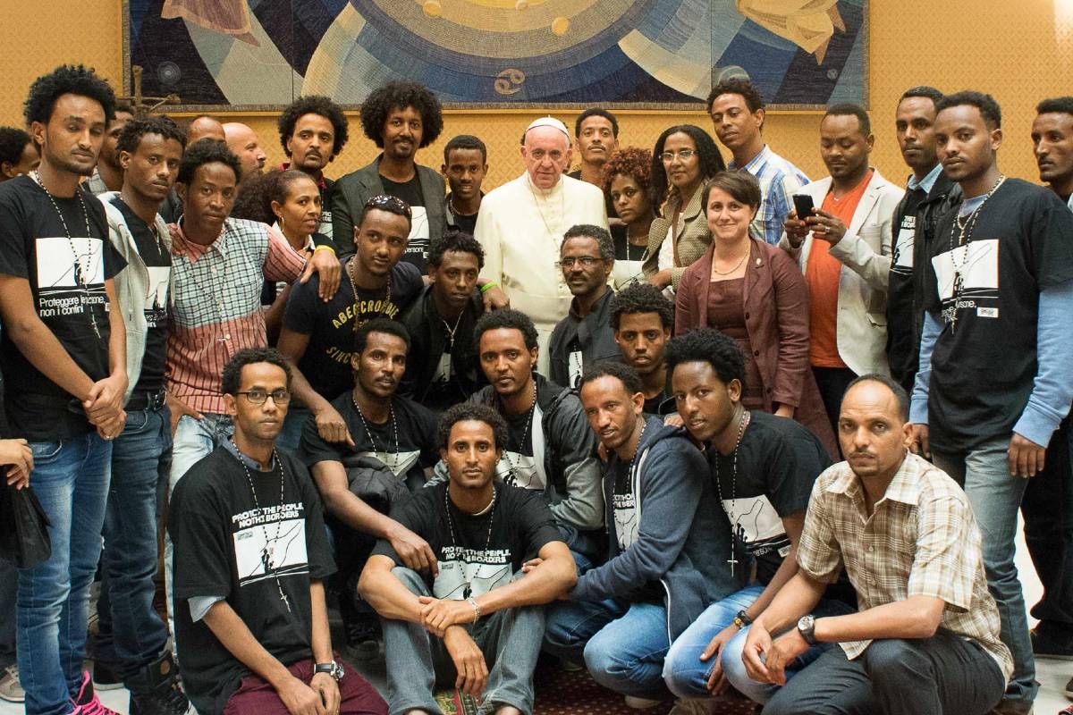 Frančišek je preživelim dejal, da ve, da so se po rešitvi soočili z zaprtimi vrati. Zato je Evropejce pozval, naj odprejo vrata svojih src, kajti to je najpomembnejše v tej situaciji, poroča nemška tiskovna agencija dpa. Večina beguncev, ki jih je sprejel papež, izvira iz Somalije in Eritreje. Skupno je tragedijo pred letom dni, ko je potonila ladja iz Libije, preživelo 155 pribežnikov.