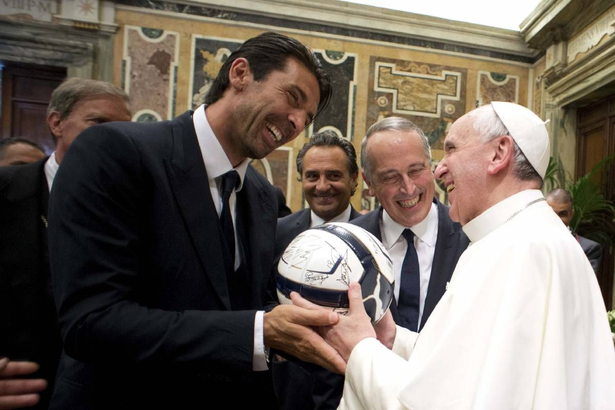 Papež se je na srečanju z nogometaši pogovoril o njihovi socialni vlogi v družbi, obenem pa je dejal, da se ne bo opredelil, za katero stran bi jutri v Rimu navijal. Ker gre za prijateljsko tekmo, je papež ob tem dejal: "Tako naj tudi bo, če lahko prosim." Papež je bil že med službovanjem nadškofa v Buenos Airesu velik navijač nogometa, poročajo tuje tiskovne agencije.