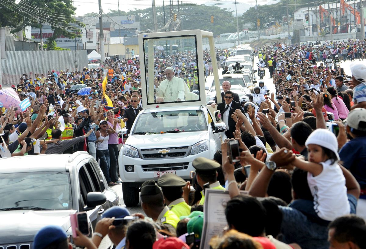 Sveti oče se je nato odpravil proti nunciaturi v Quitu in na poti presedel v odprti papamobil, saj so ga ob cesti pričakale navdušene množice, sam pa jih je želel pozdraviti.