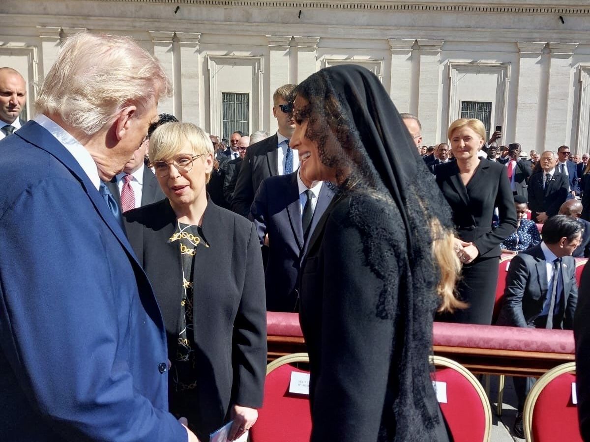 Na pogrebu papeža Frančiška sta se srečali slovenska predsednica Nataša Pirc Musar in ameriška prva dama Melania Trump.