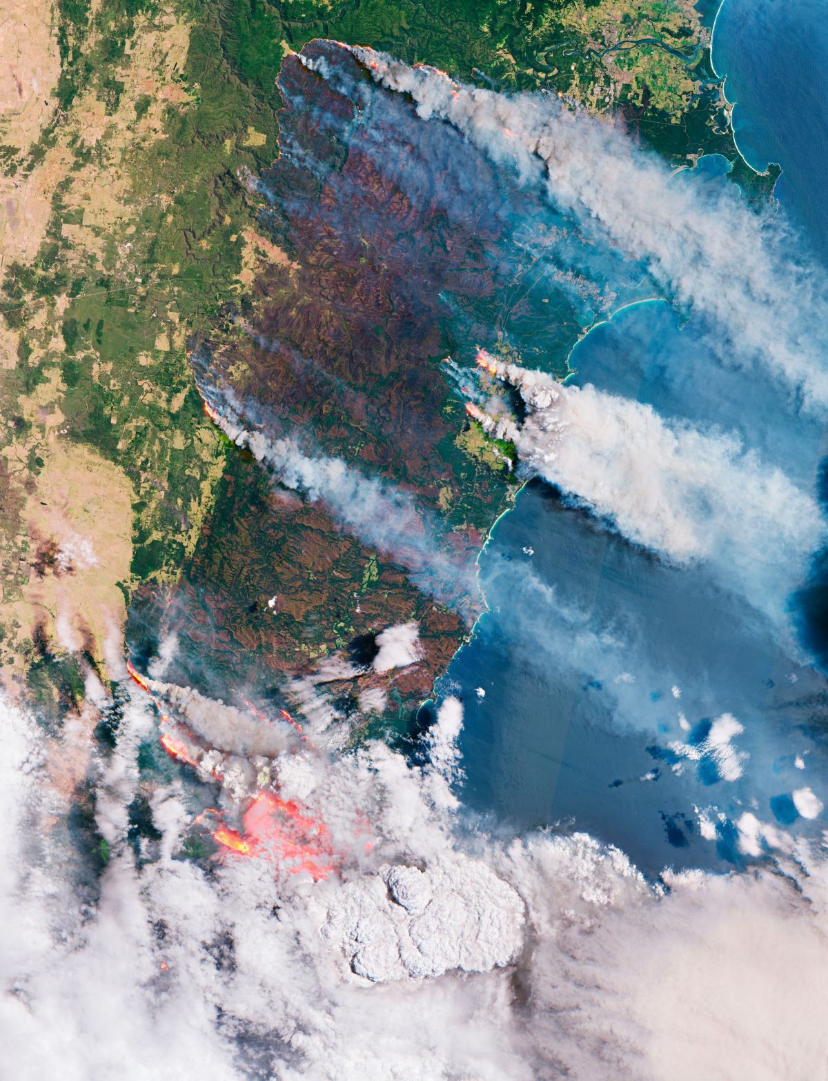 Po Avstraliji divja ogromen "megapožar", viden iz vesolja; dim prineslo vse do Južne Amerike (VIDEO)