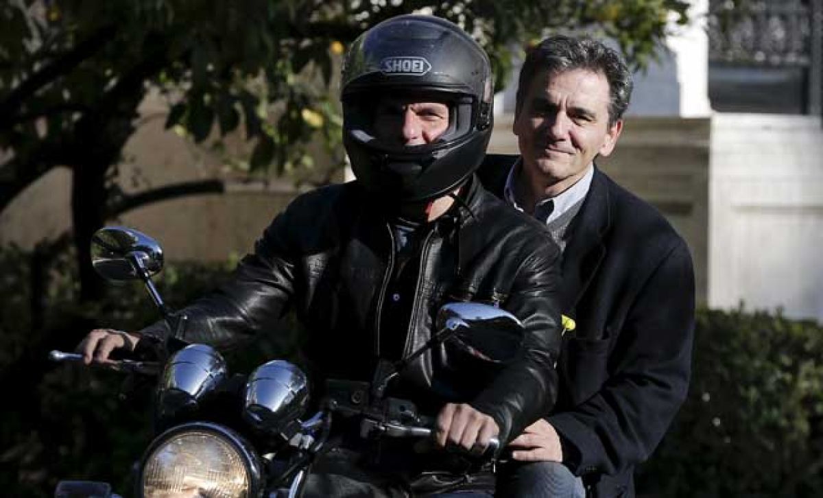 Vodja grške skupine za pogajanja s posojilodajalci Evklid Cakalotos (na motorju za Varufakisom) je bil po današnjem odstopu Janisa Varufakisa imenovan za novega finančnega ministra, poroča nemška tiskovna agencija dpa. Varufakis je kot razlog za odstop navedel želje nekaterih članov evrske skupine, da ne bi več sodeloval v nadaljnjih pogajanjih.