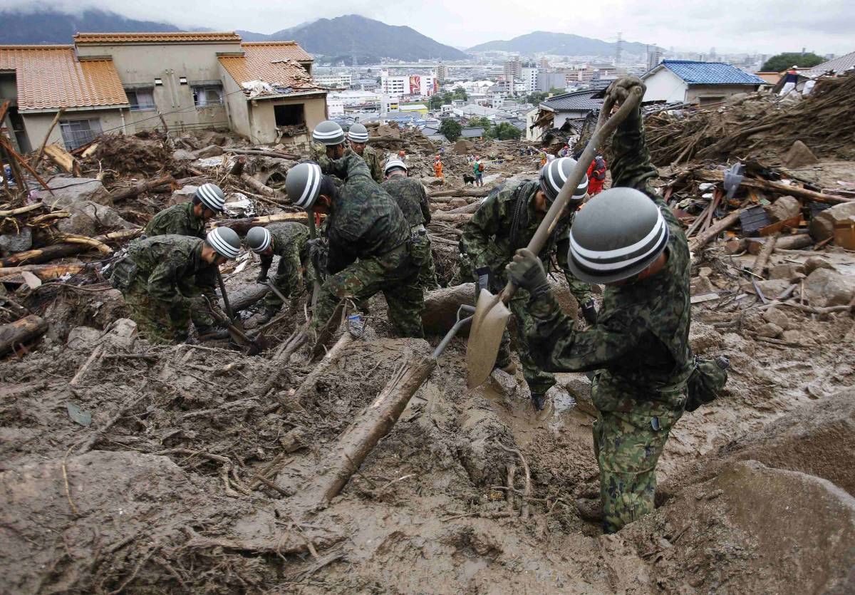 Na območju Hirošime je v sredo v zgodnjih jutranjih urah v le treh urah padlo več kot 200 milimetrov dežja na uro, zaradi česar so se s pobočja nad mestom usuli plazovi blata in zasuli več deset stavb. Toliko dežja običajno ne pade v vsem avgustu.