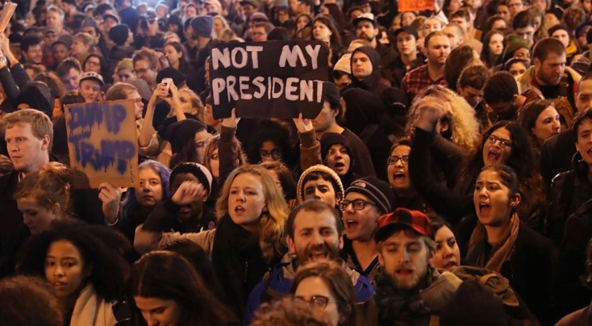 V New Yorku se je več tisoč protestnikov zbralo na Manhattnu blizu Trumpove stolpnice na Peti Aveniji, ki je simbol Trumpovega poslovnega imperija. Med njimi je bil tudi režiser Michael Moore, avtor dokumentarca Trumpland. Več sto ljudi se je zbralo tudi v tamkajšnjem parku, kjer so med drugim vzklikali: "On ni naš predsednik".