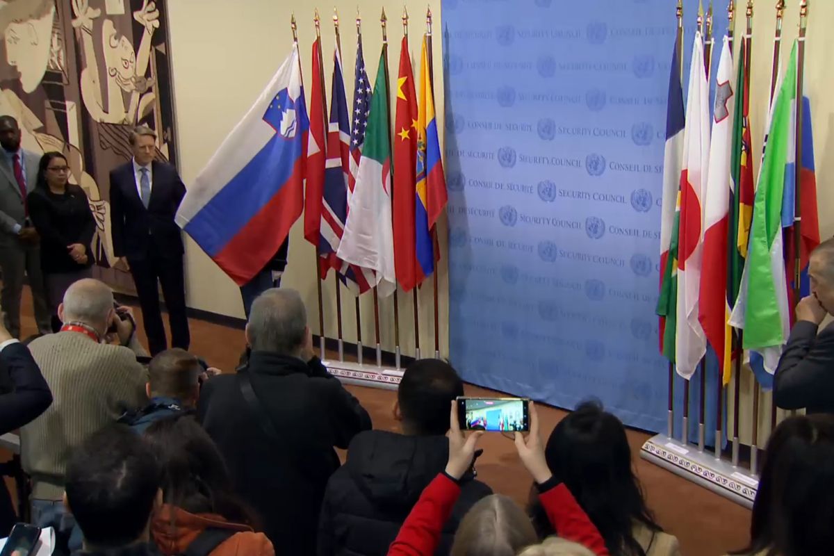 Pred slovesnostjo z zastavami se je Slovenija zjutraj v Varnostnem svetu udeležila svoje prve seje v mandatu, ki je bila namenjena predstavitvi francoskega programa dela.