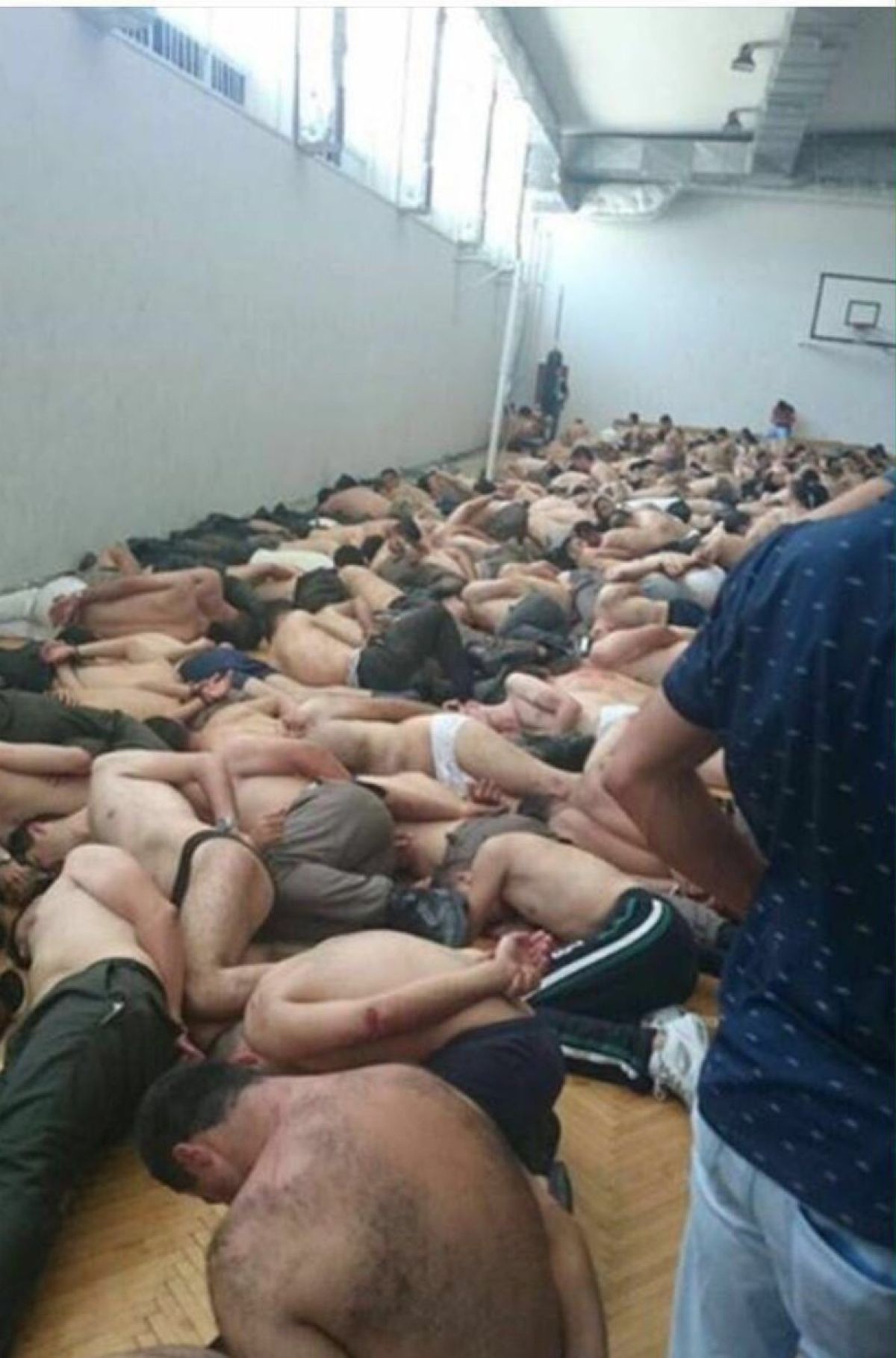 Po neuspelem (domnevnem) vojaškem udaru v Turčiji so ulice pa poziv predsednika Erdogana preplavili njegovi podporniki in se nečloveško znesli nad prevratniki. Vse to mirno gledajo Erdoganu zveste turške varnostne sile, ki se nad ujetniki tudi same kruto znašajo. Vsi aretirani so morali sleči svoje uniforme, nato so morali v spodnjem perilu in vklenjeni leči na tla. Na eni od fotografij jih je deset, kako drug ob drugem ležijo v nekem prostoru, ki spominja na konjušnico.