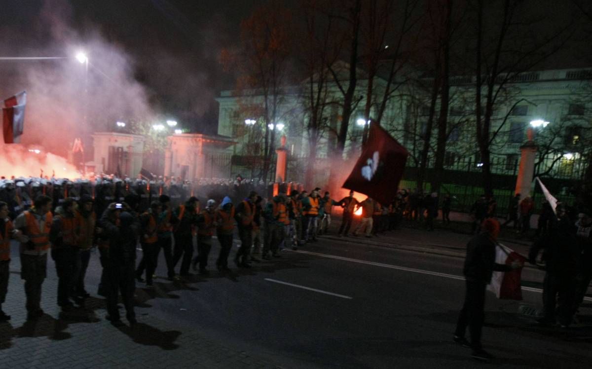 V Varšavi se je v ponedeljek, na dan neodvisnosti, na shodu zbralo med 20.000 in 50.000 ultranacionalistov. Demonstranti so tudi metali kamenje in steklenice, zaradi česar je bilo hospitaliziranih 12 policistov, 72 protestnikov pa so aretirali.