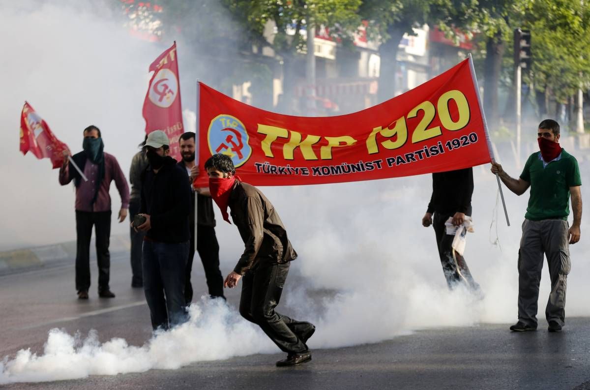 Protestniki so v policiste metali kamenje in vzklikali: "Smrt fašizmu! Naj živi 1. maj!" Proteste so sicer sklicale stranke turške levice in sindikati. V spopadih je bilo poškodovanih okoli 30 oseb, večinoma policisti, policija pa je aretirala 72 ljudi, so sporočile oblasti.