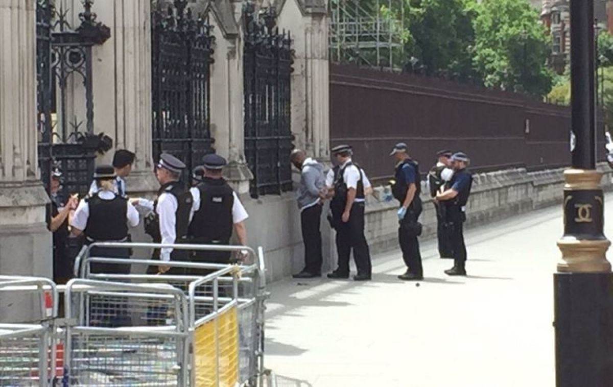 Pred britanskim parlamentom v Londonu je včeraj policija prijela moškega zaradi suma, da ima nož.