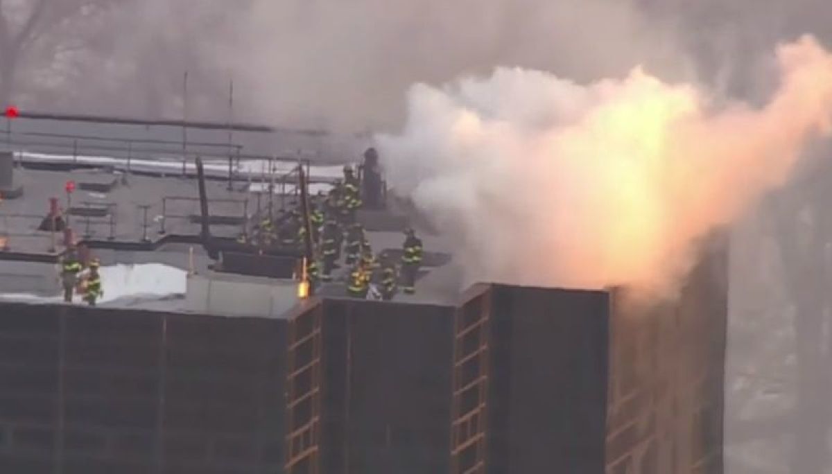 Na posnetkih ameriške televizije NBC je bilo videti okoli 10 gasilcev na strehi stolpnice, iz ene od odprtin pa se je dviga bel dim. Sicer pa je bilo po poročanju tiskovne agencije Reuters na delu najmanj 84 gasilcev, ki so požar že pogasili. Policija je sporočila, da je požar izbruhnil zaradi napake v električni napeljavi.