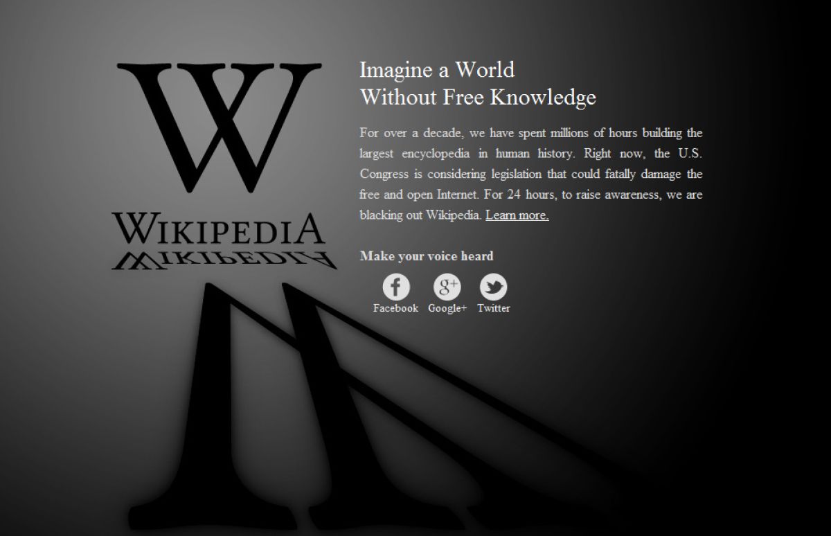 "Že več kot desetletje smo z organizacijami za svobodo govora in digitalne pravice gradili največjo enciklopedijo v človeški zgodovini," so opozorili ustvarjalci Wikipedie. "Prav zdaj ameriški kongres obravnava zakonodajo, ki bi lahko usodno škodovala svobodnemu in odprtemu internetu. Za 24 ur bomo za dvig ozaveščenosti zatemnili spletno stran," so dodali.