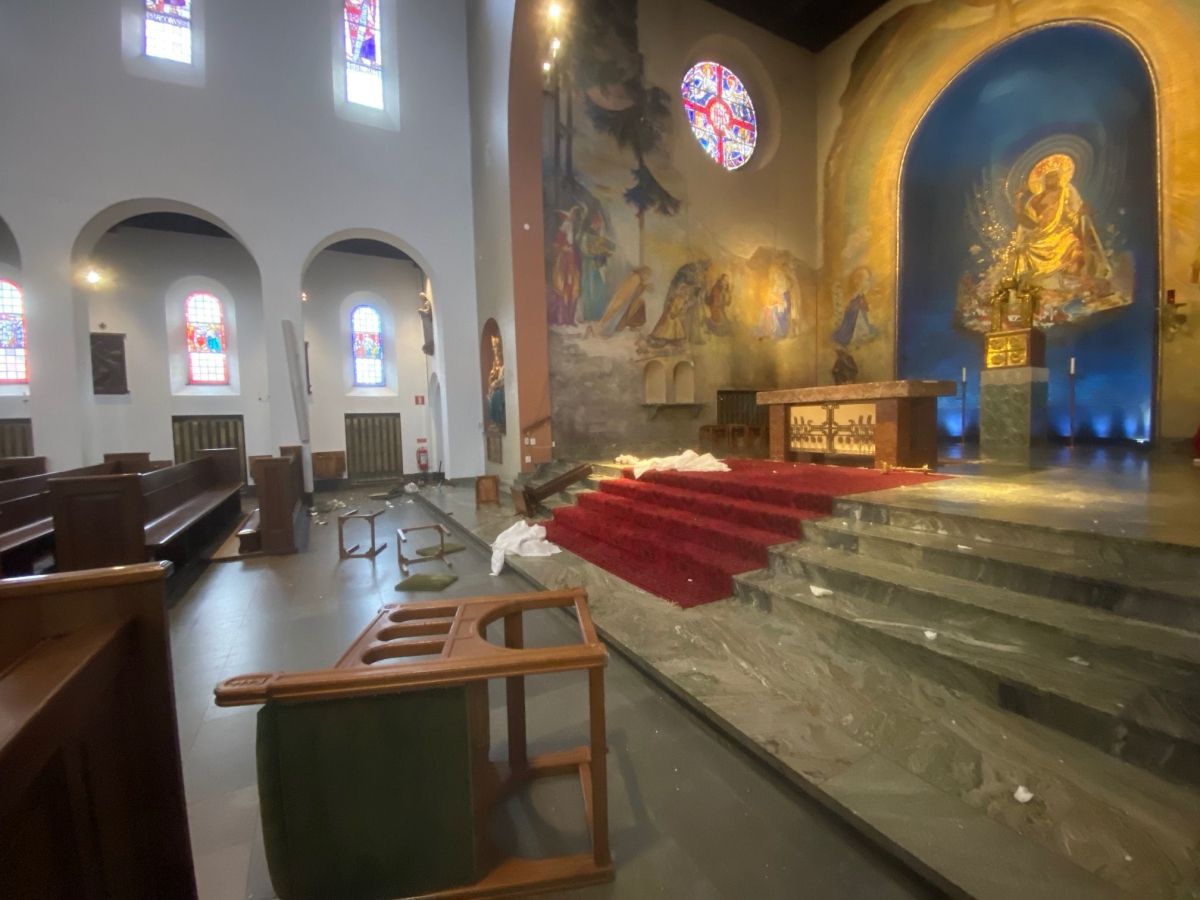 Razdejana katoliška cerkev v švedskem Göteborgu, kjer domuje med drugimi tudi slovenski duhovnik (FOTO)