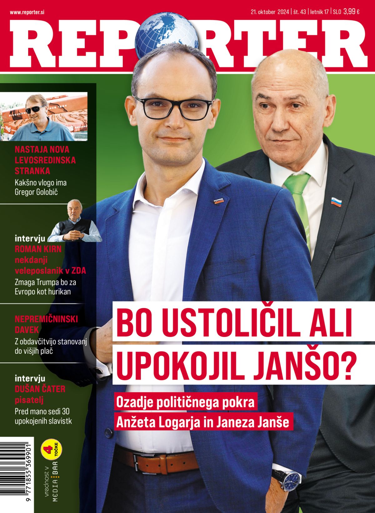 Donald Trump je oseba, ki v politiki ne zasleduje interesov svoje države in njenih državljanov, ampak izključno svoj interes. Tako bivšega in morda tudi novega ameriškega predsednika povzame izkušeni diplomat Roman Kirn, nekdanji veleposlanik Slovenije v Združenih državah Amerike in hkrati nekdo, ki se je s Trumpom tudi osebno spoznal. Za Reporter je spregovoril o prihajajočih ameriških predsedniških volitvah, do katerih sta še dobra dva tedna; povedal je, kaj prinaša zmaga Trumpa in kaj Harrisove; poudaril je, kaj utegne biti ključno v preostanku volilne kampanje ter povedal, pri čem nam Melania ne more pomagati.