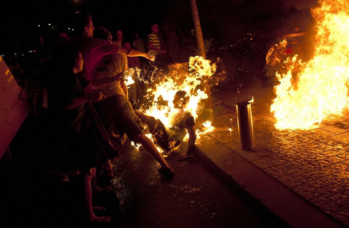 Mafi je utrpel opekline na 80 odstotkih telesa, potem ko se je polil z bencinom in se vžgal, medtem ko je čakal na zgodnji jutranji avtobus. Incident se je zgodil dva dni po smrti moškega, ki se je teden poprej zažgal med množičnim protestom proti varčevalnim ukrepom in slabim življenjskim pogojem v Izraelu.