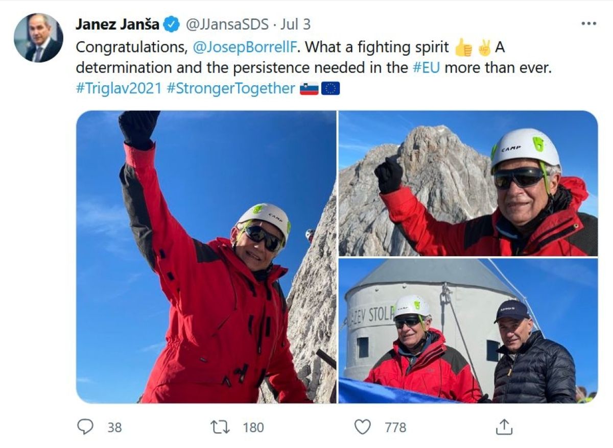 Spomnimo, pred dobrim tednom dni sta se Borrell in Janša skupaj povzpela na Triglav. Kakšen "borbeni duh" je Janša na twitterju komentiral Špančevo zdržljivost.