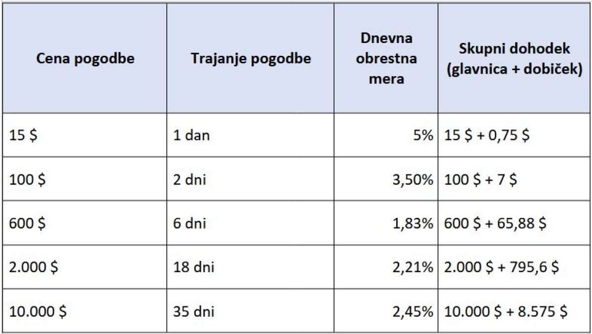 • Vložite 1000 $ za 3 dni, z dnevnim dobičkom 20,3 $, kar prinese skupni dobiček 1000 $ + 60,9 $ = 1060,9 $.