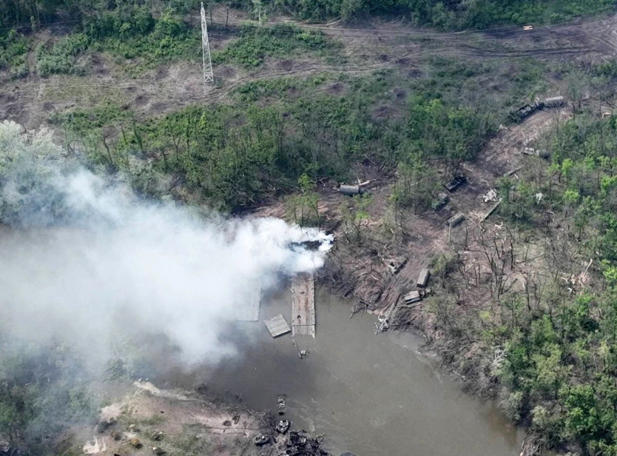 Ukrajinsko obrambno ministrstvo je na družbenih omrežjih objavilo fotografije, ki domnevno prikazujejo zgorele oklepe ruskih tankov in oklepnih vozil na vzhodnem bregu reke Severski Donec zahodno od mesta Severodoneck v regiji Lugansk. Iz reke štrlijo ostanki pontonskih mostov.
