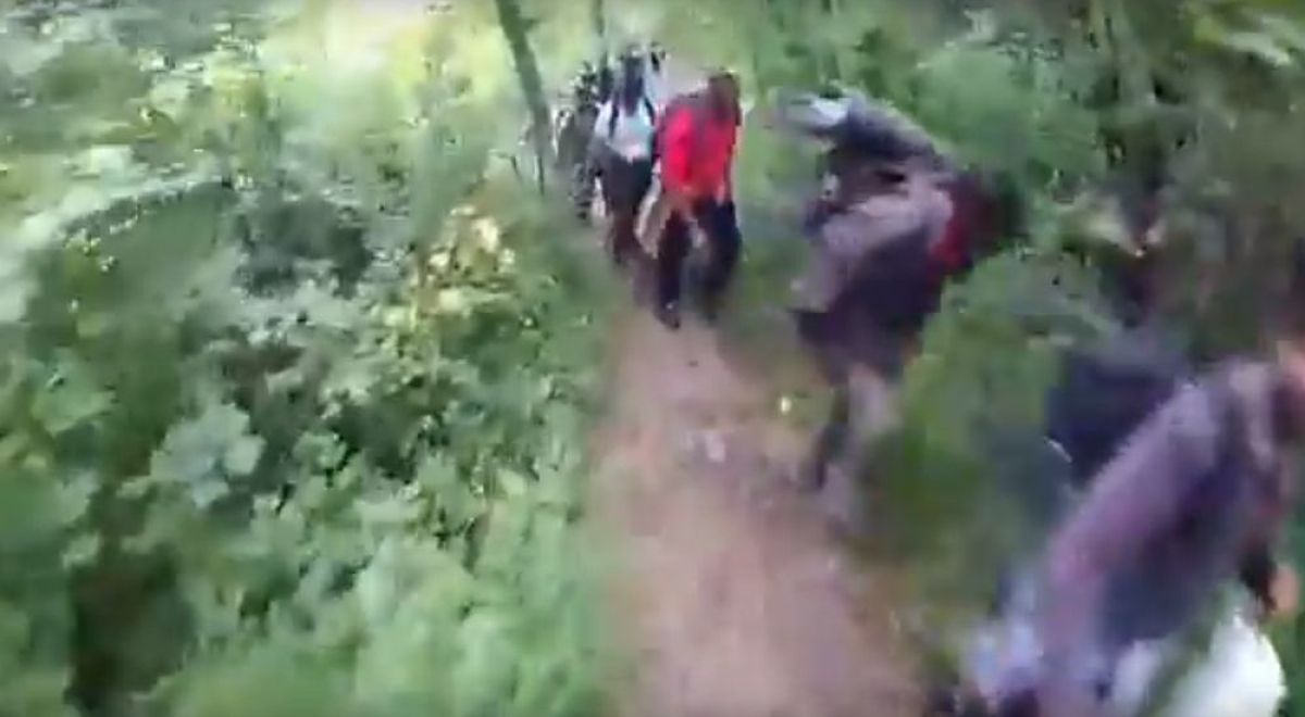 Šokirani gorski kolesar je na planini blizu Slovenije zapeljal skozi kolono migrantov (VIDEO)