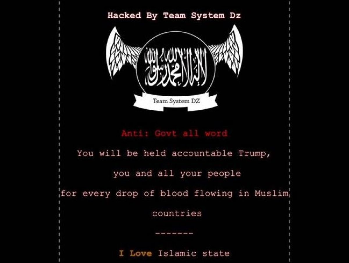 "Trump in vsi Američani boste odgovarjali za vsako prelito kapljo krvi v muslimanskih državah," se je glasilo hekersko sporočilo, ki se je zaključilo z "Ljubim Islamsko državo". Hekerji s tem sporočilom obsojajo dejanja ameriškega predsednika Donalda Trumpa na Bližnjem vzhodu in izrekajo naklonjenost skrajni skupini Islamska država (IS), poroča BBC.