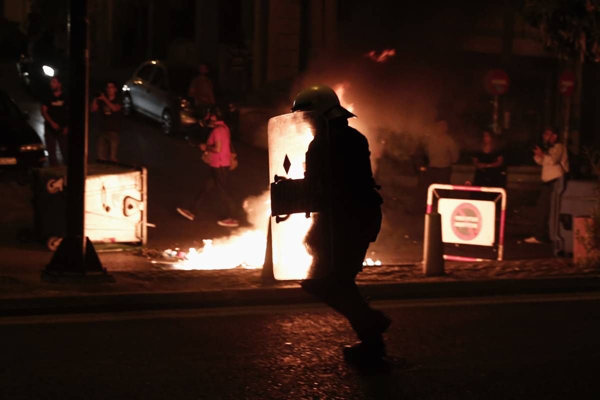 Pred tem se je na mirnem zborovanju v središču Aten zbralo okoli 10.000 ljudi, predstavnikov civilne družbe in levih političnih strank, ki so protestirali proti umora glasbenika Pavlosa Fisasa.
