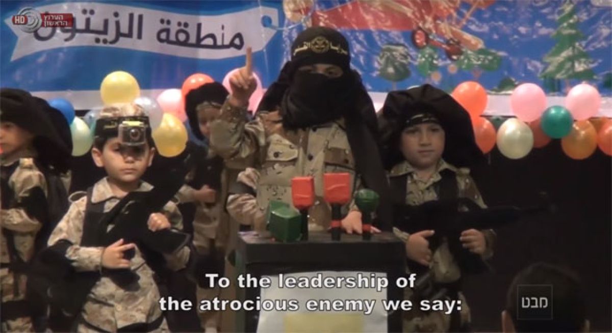 Indoktrinacija palestinskih otrok se začenja že v vrtcu: palestinski vrtec v četrti Zeitoun v Gazi je ob zaključni slovesnosti šestletne otroke oblekel v vojaške uniforme in jih predstavil kot bodoče borce proti Izraelu. Vrtec pod pokroviteljstvom skrajnežev Islamskega džihada se celo hvali z indoktrinacijo otrok, ki bodo nadaljevali boj z Izraelom.