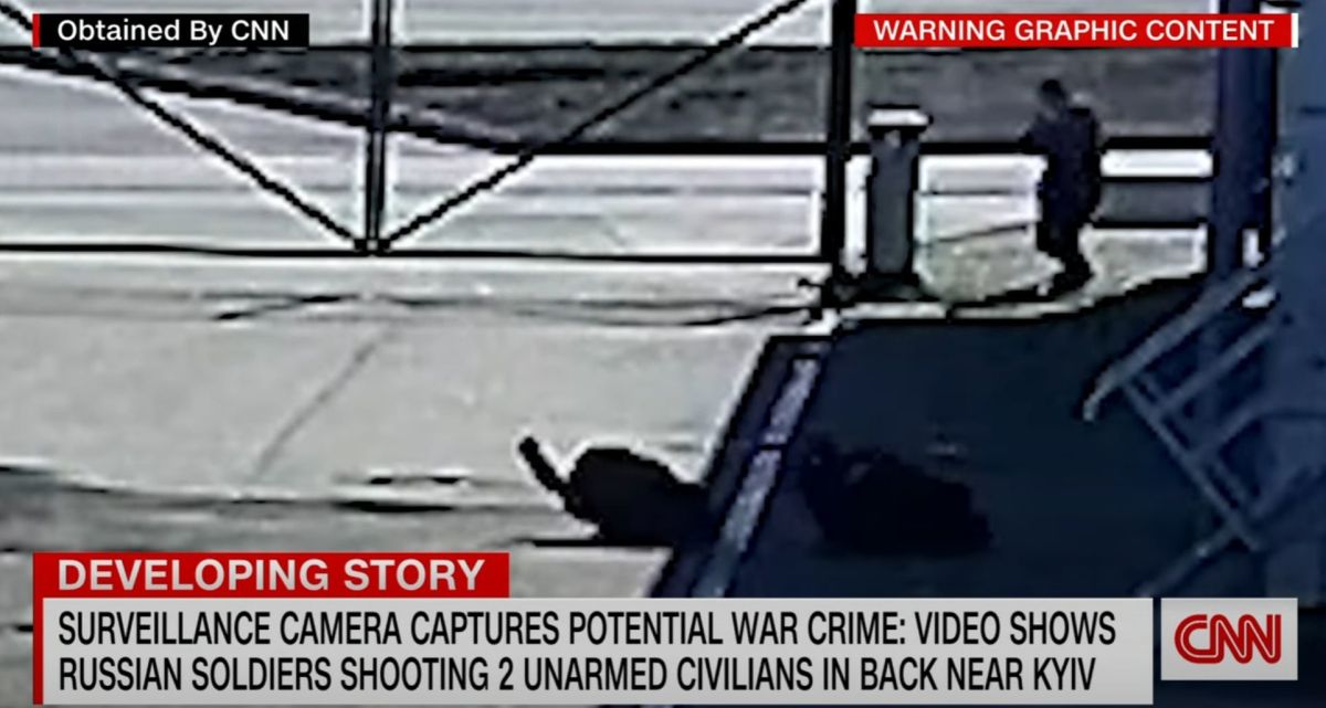 Umor je zabeležila varnostna kamera in iz posnetka je očitno, da ruski vojaki hladnokrvno umorijo dva neoborožena civilista, ki so ju prej sami pregledali in se prepričali, da ne nosita orožja.