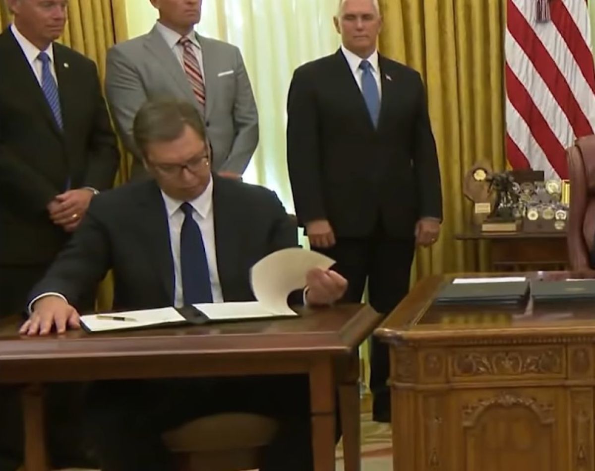 Sta Vučić in Hoti sploh vedela, kaj jima je v Beli hiši dal za podpisati Trump (VIDEO)