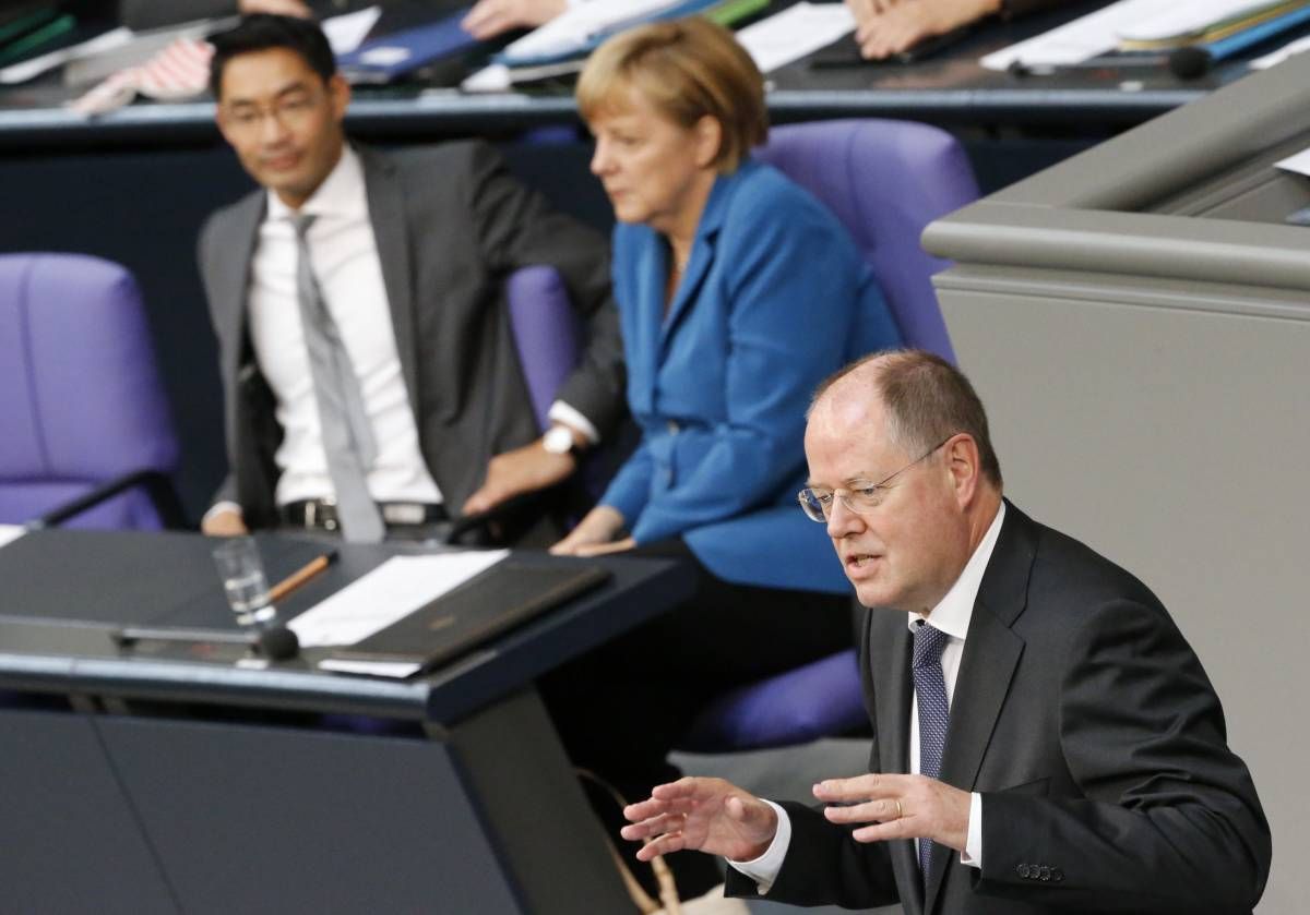 Steinbrück v nemškem parlamentu napadel Merklovo