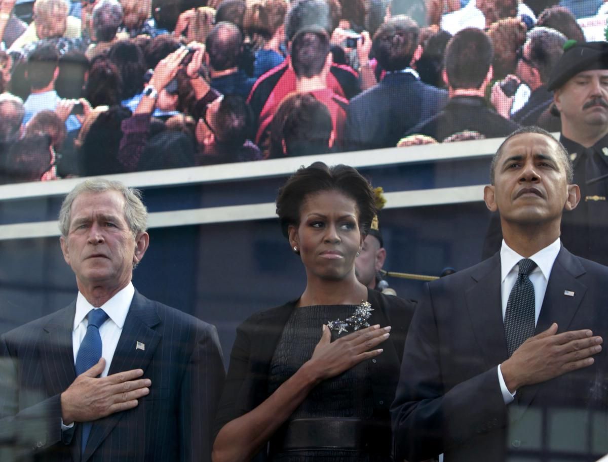 Bush in Obama sta si s soprogama Lauro in Michelle pred začetkom slovesnosti ogledala spominski park v spomin na vse žrtve napadov 11. septembra leta 2001, kakor tudi prvega terorističnega napada na Svetovni trgovinski center (WTC) leta 1993. Med slovesnostjo so tudi uradno odprli spominski park, muzej pa je še v gradnji.