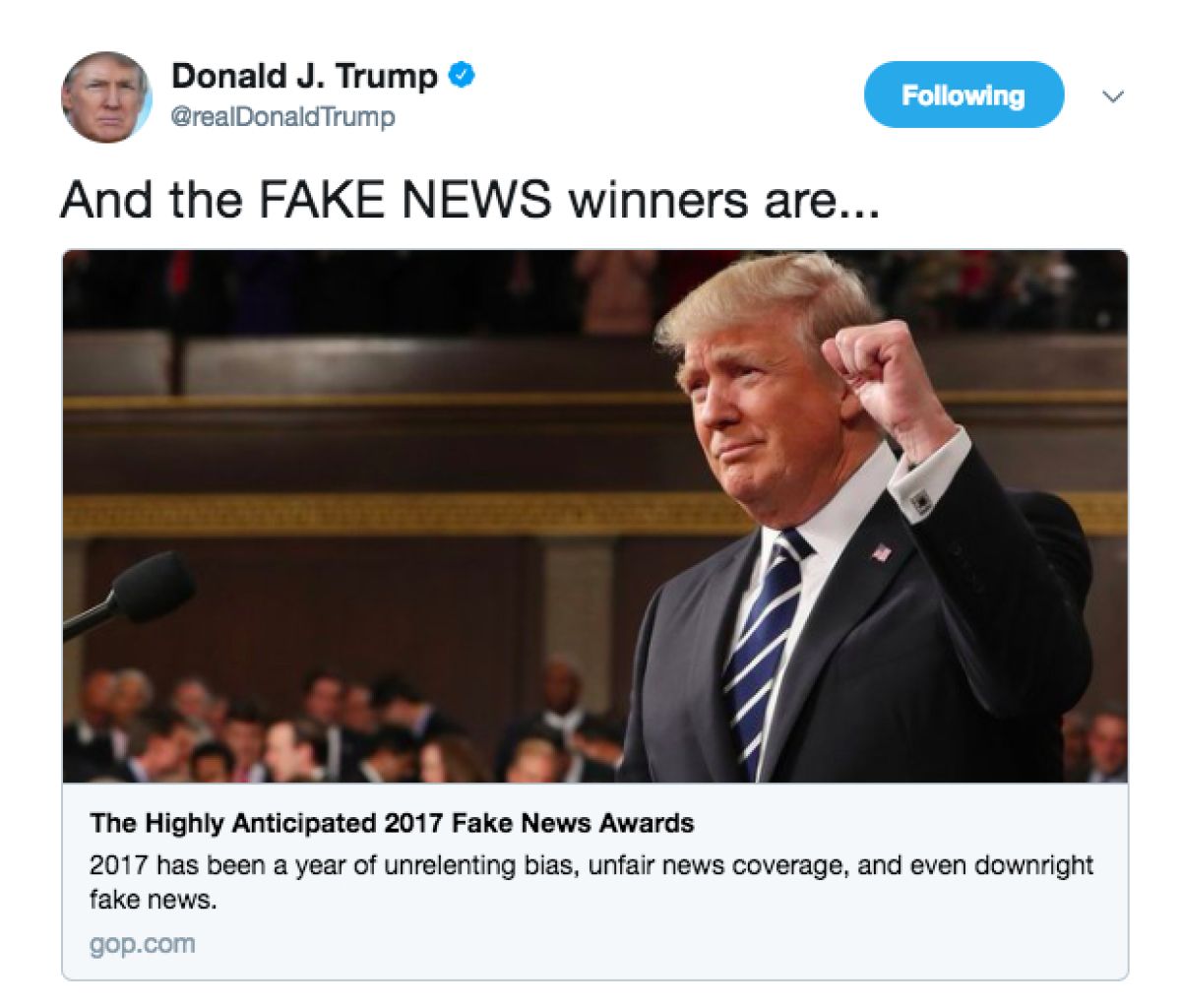 Ameriški predsednik Donald Trump je v sredo le uresničil napoved in na Twitterju sporočil, da je podelil nagrade najbolj nepoštenim in pokvarjenim medijem.