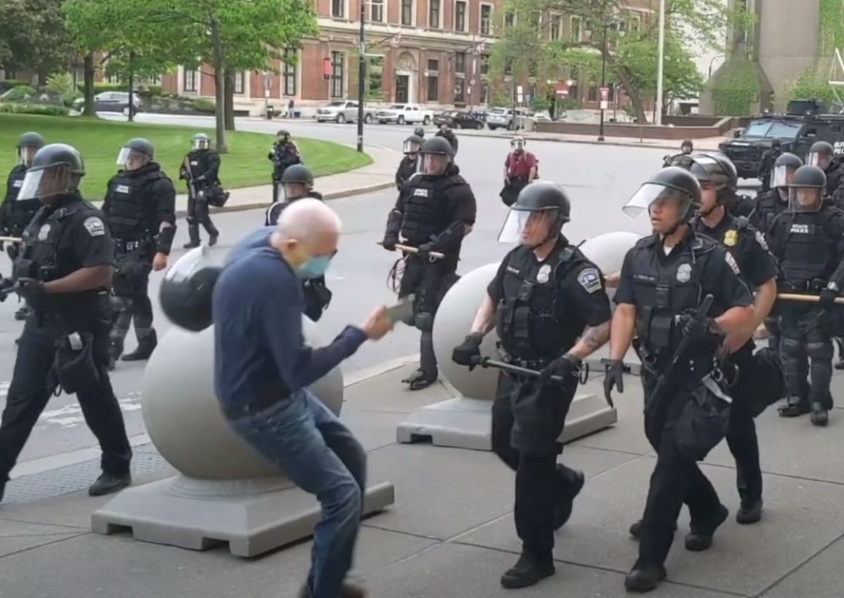 Policija je najprej v poročilu o incidentu zatrdila, da se je 75-letnik spotaknil in sam padel na tla, kar je v nasprotju z videoposnetkom incidenta. Odgovorna policista so morali kolegi kasneje aretirati in sta obtožena fizičnega napada.