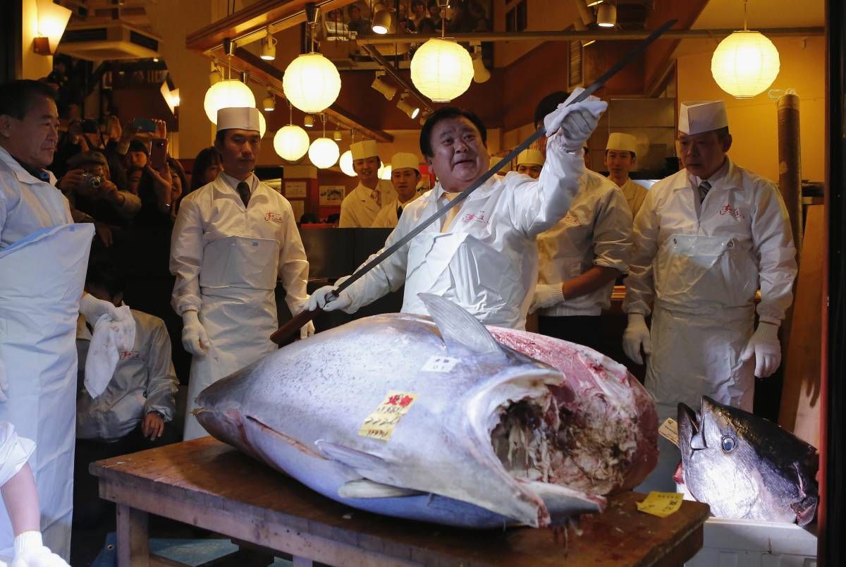 Veriga suši restavracij je na ribji tržnici v Tokiu odštela za ribo rekordnih 155,4 milijona jenov (okoli 1,3 milijona evrov). Za takšno vsoto so na prvi dražbi v novem letu prodali 222 kilogramov težko ribo vrste modroplavuti tun, ki so jo ulovili pred obalo mesta Oma na severu države.