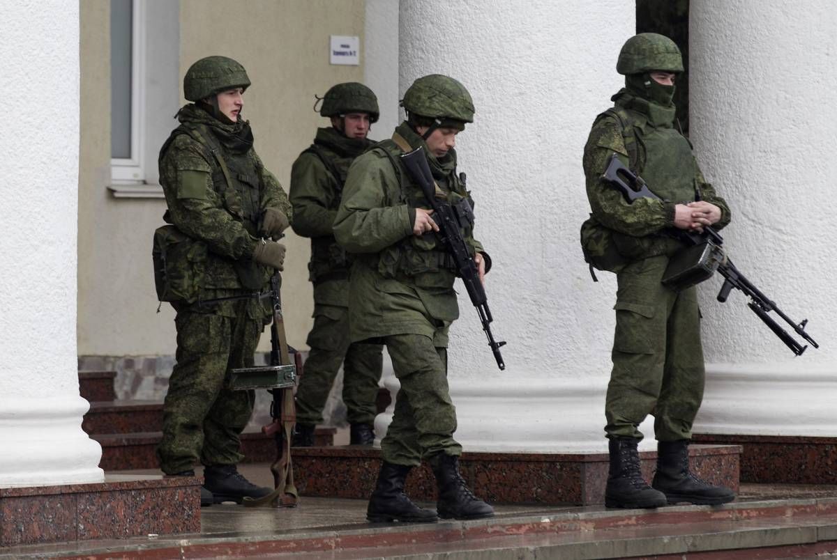 Več kot deset oboroženih vojakov v uniformah brez oznak je v petek ves dan patruljiralo pred letališčem v Simferopolu. Ukrajinski notranji minister Arsen Avakov je Rusijo obtožil za "oborožen vdor" na Krim.