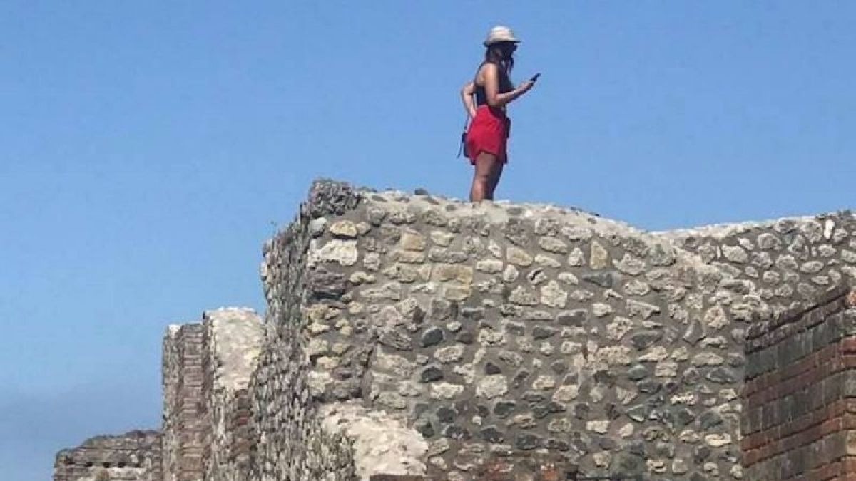 Turistka v Pompejih splezala na antično stavbo, da je lahko naredila selfi; zdaj jo išče policija