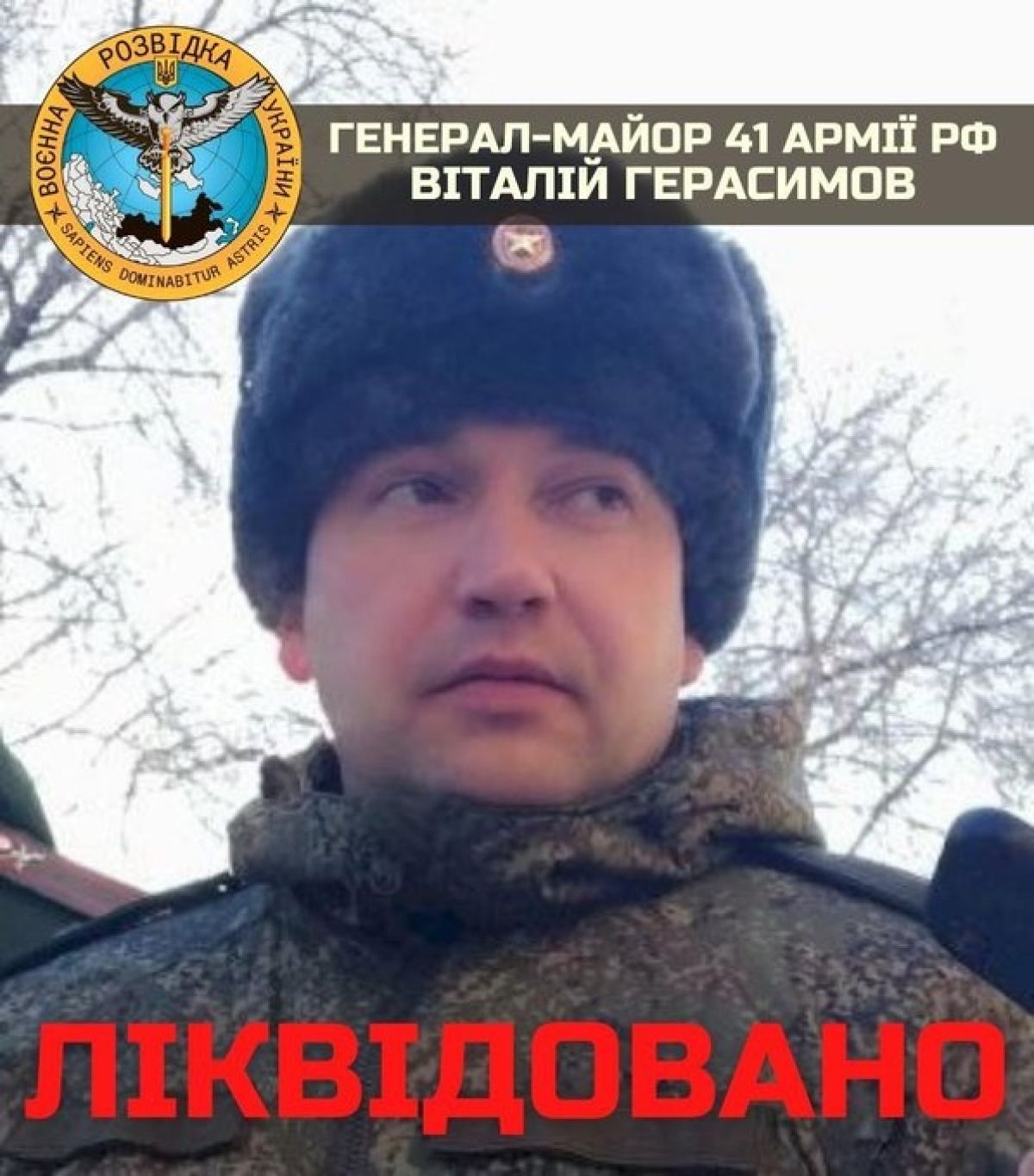 Ukrajinska vojaška obveščevalna služba je sporočila, da je bil v bojih okrog Harkova ubit 45-letni ruski general Vitalij Gerasimov, sicer veteran bojev v Čečeniji in Siriji. Leta 2014 je sodeloval tudi v ruski okupaciji polotoka Krim.