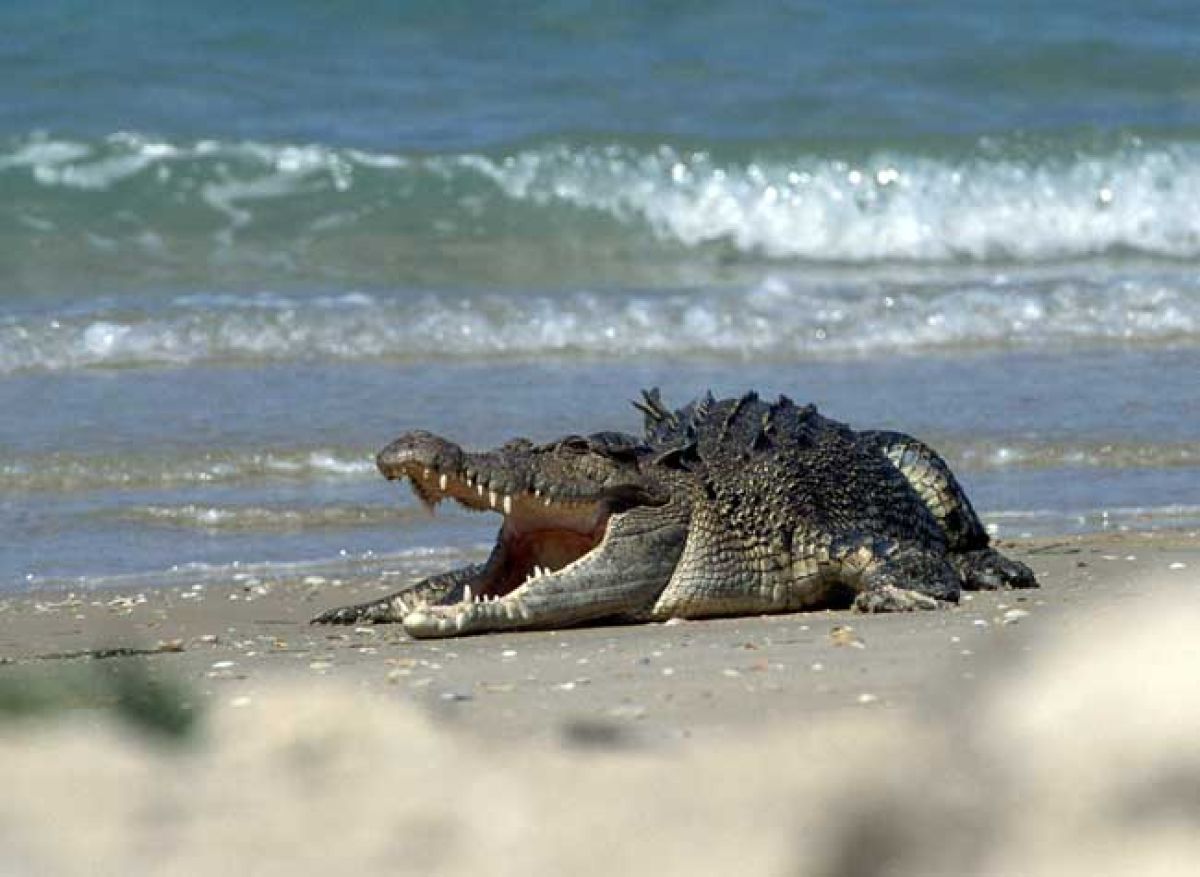 Morski krokodili so lahko veliki do sedem metrov in jih v severni Avstraliji pogosto opazijo skrite v zalivu ali med počivanjem na obali.