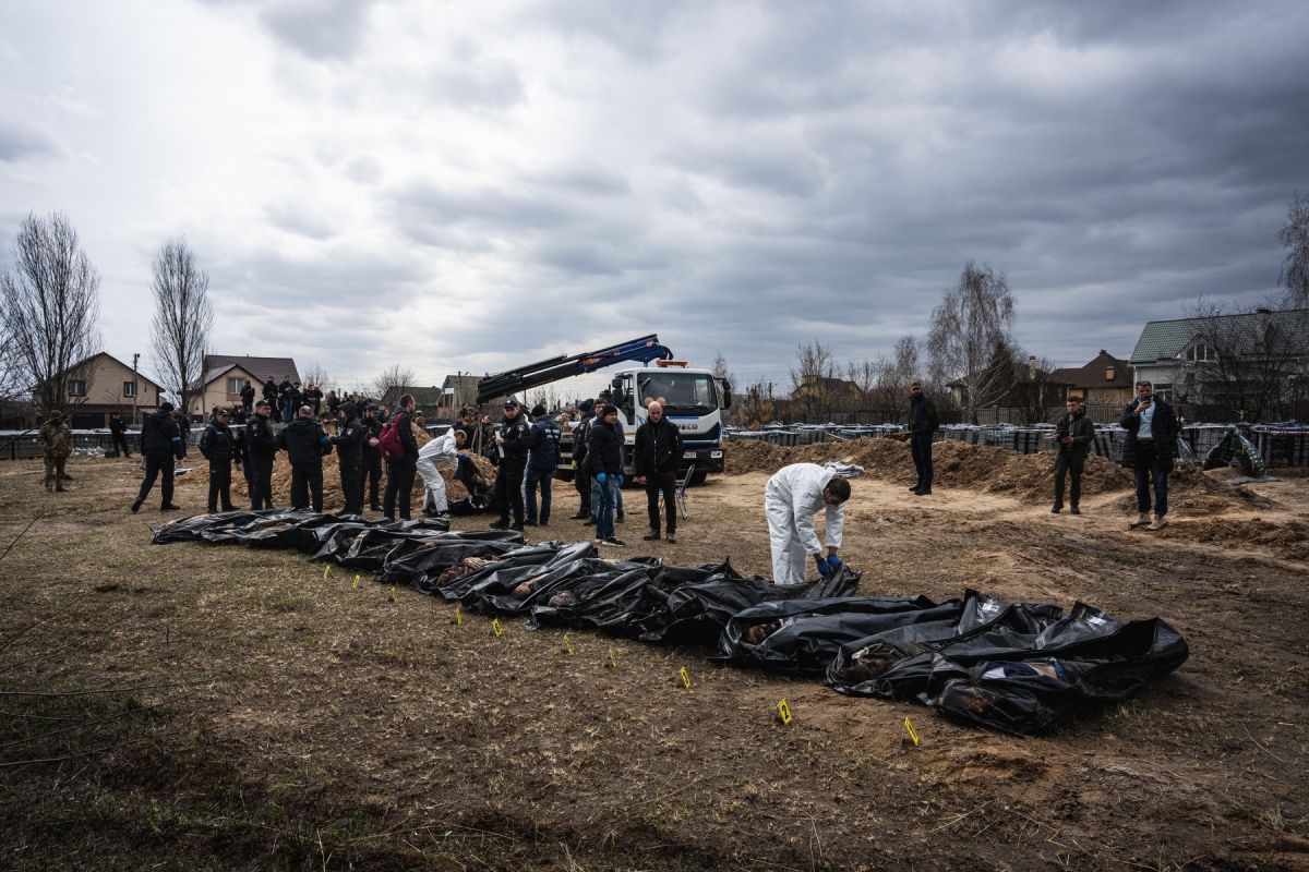 Dodal je, da so na truplih našli strelne rane, kar potrjuje trditve, da so bili umrli namenske tarče napadov in ne slučajne žrtve zračnih napadov ali artilerijskega ognja. "Te dogodke lahko opredelim kot vojni zločin," je dejal.