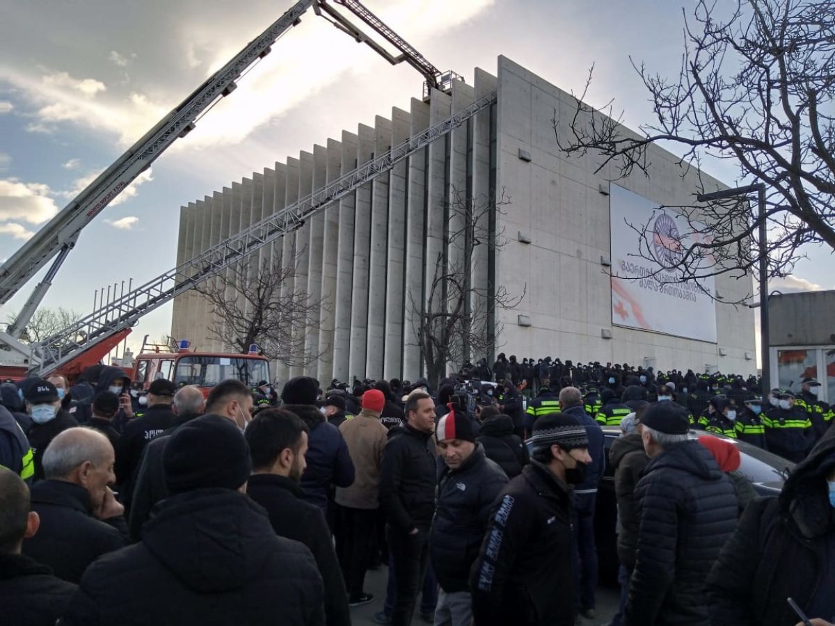 Medtem je več sto pripadnikov protiizgredniške policije proti njegovim podpornikom in voditeljem vseh drugih opozicijskih strank, ki so bili od minule srede v zgradbi, kjer ima sedež UNM, uporabilo solzivec. Številne podpornike opozicije so pridržali. Eden od vodilnih članov UNM Giorgij Pataraja je dejal, da je policija s sedeža stranke "ukradla računalniške strežnike".