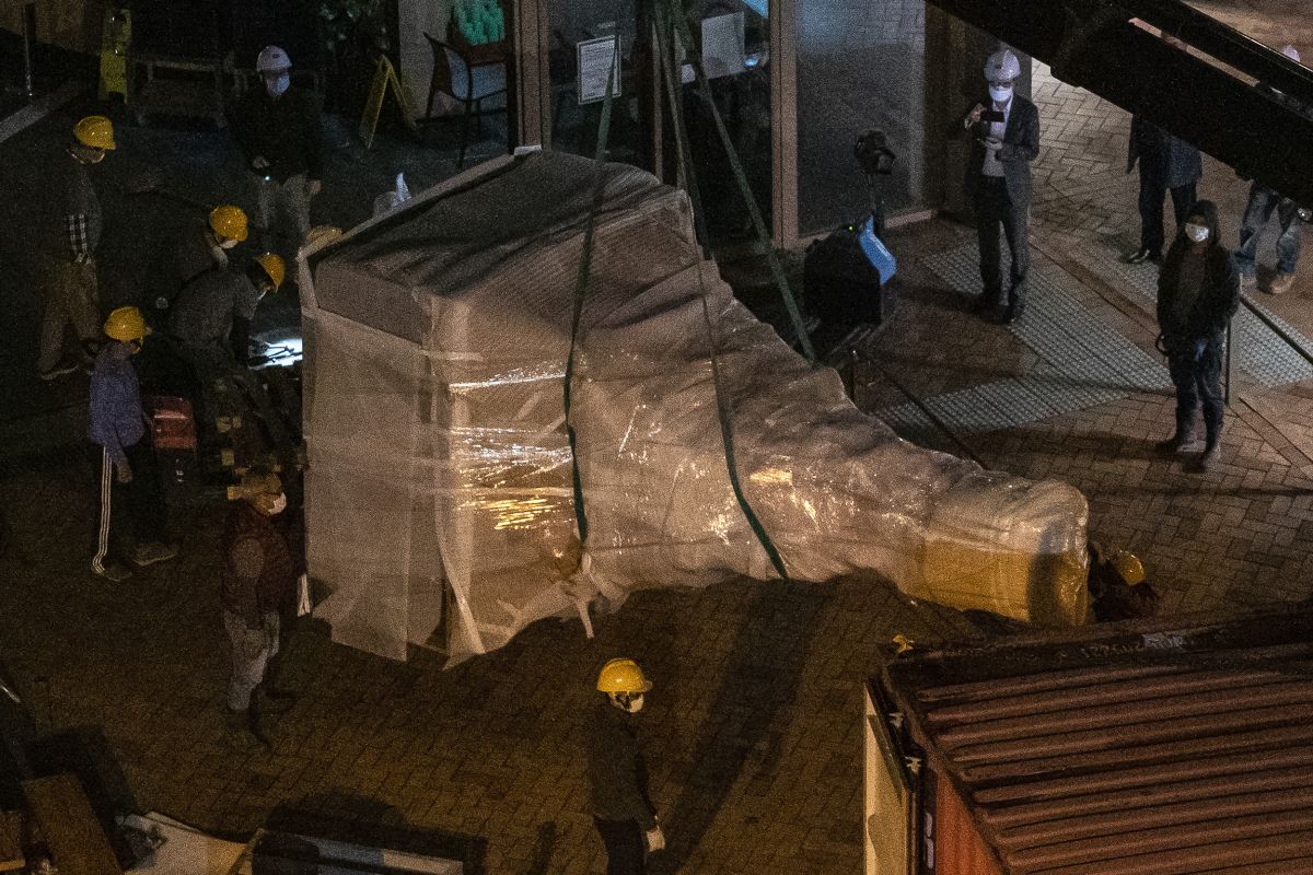 Hongkonška univerza je sprva ukazala odstranitev kipa že v oktobru. Tako so se odločili po pravnem nasvetu in oceni ogroženosti, skrbela naj bi jih tudi varnost zaradi krhkosti kipa. Delavci so osem metrov visok kip zdaj odstranili, skriti za plastičnimi kulisami, varnostniki pa so novinarjem preprečili dostop do območja.