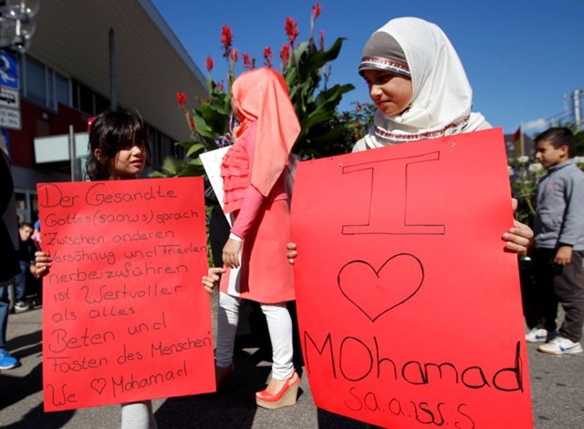 Protestni shod, v katerem je bilo tudi veliko žensk in otrok, je spremljalo veliko število policistov, poroča nemška tiskovna agencija dpa. Protestniki so nosili transparente z napisi "Ne svobodi do žalitve" in "Naš prerok Mohamed je tabu".