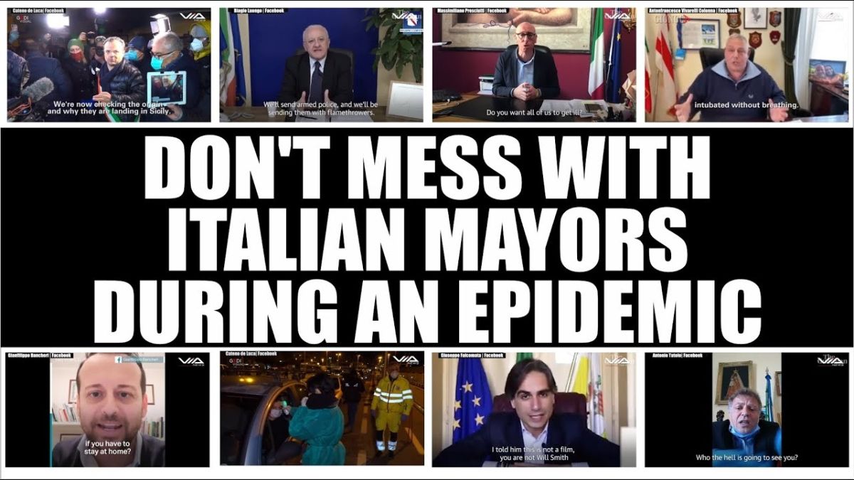 K spoštovanju pravil karantene na vse mogoče načine ljudi pozivajo tudi župani. Po spletu so tako zaokrožile kompilacije videoposnetkov italijanskih županov, kako svoje krajane prepričujejo, naj vendarle ostanejo doma, saj so razmere skrajno resne.