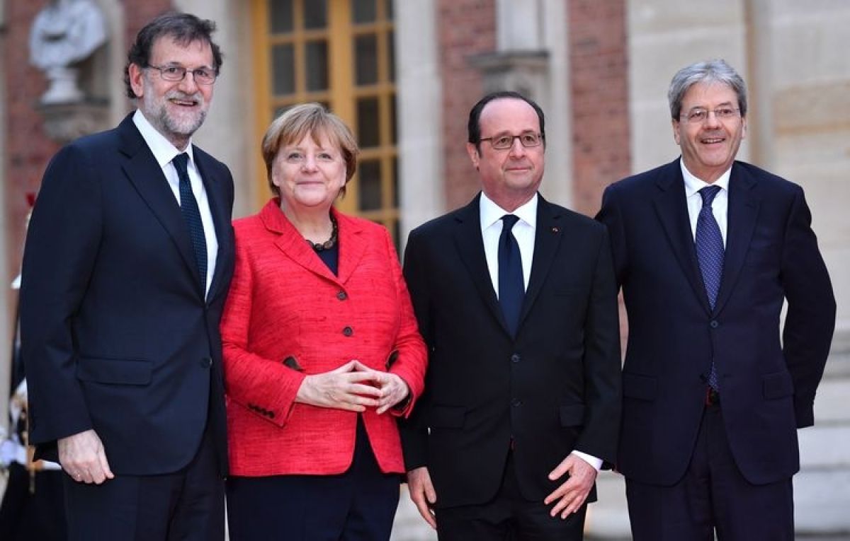 Francoski predsednik Francois Hollande, nemška kanclerka Angela Merkel, španski premier Mariano Rajoy in predsednik italijanske vlade Paolo Gentiloni so se včeraj v Parizu zavzeli za Evropo več hitrosti, ki bo omogočila, da bodo določene članice Evropske unije lahko napredovale hitreje kot druge, poroča francoska tiskovna agencija AFP.