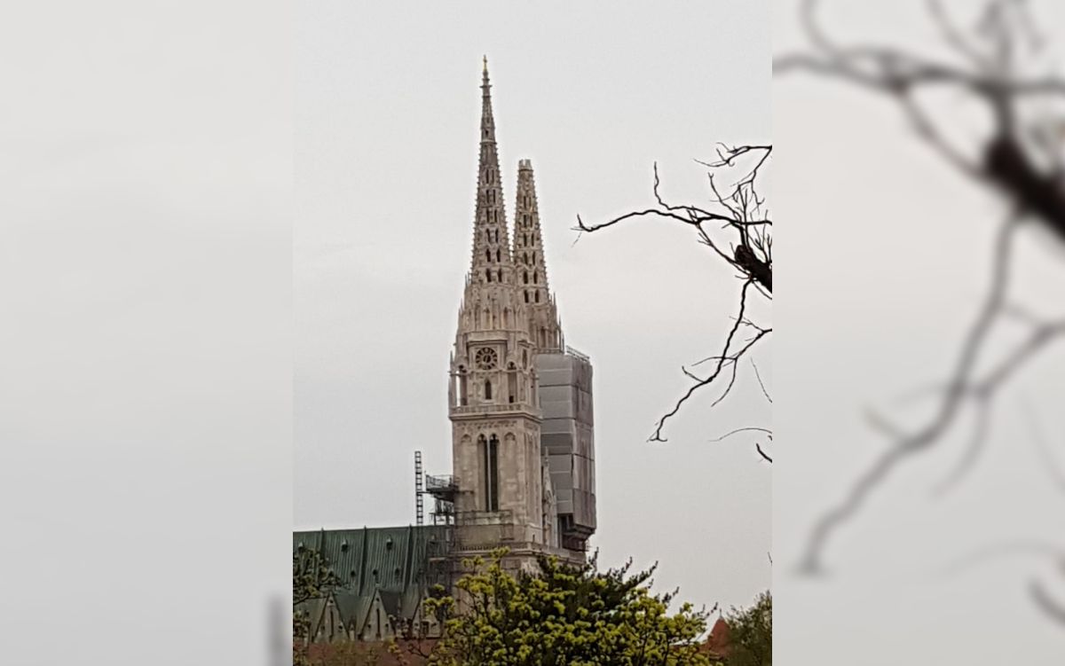 Z zagrebške katedrale so po večdnevnih pripravah včeraj odstranili vrh enega od zvonikov, ki je po marčnem potresu grozil, da se bo zrušil. Pripadniki hrvaške vojske so na severnem stolpu podtaknili eksploziv na približno 92 metrih višine za odstranitev 13,5-metrskega in 30 ton težkega vrha. Tega so po eksploziji z žerjavom prenesli na tla.